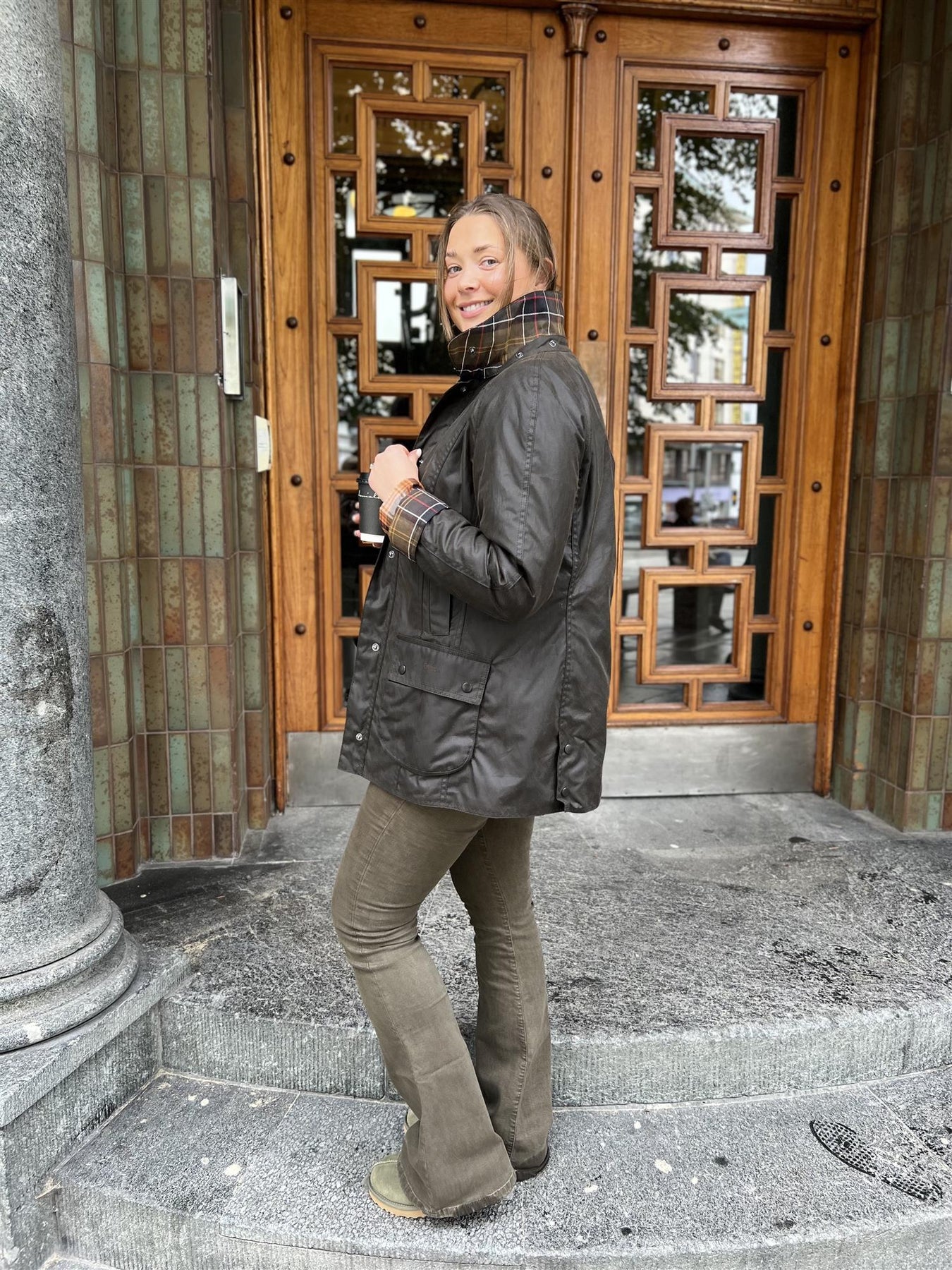 Classic Beadnell fra Barbour. Den ikoniske jakken i oilskin med cordfløyel på kragen og rutete stoff innvendig. Den har to store lommer i front, samt to sidelommer med deilig fleece innvendig. Den lukkes med glidelås og knapper i front.