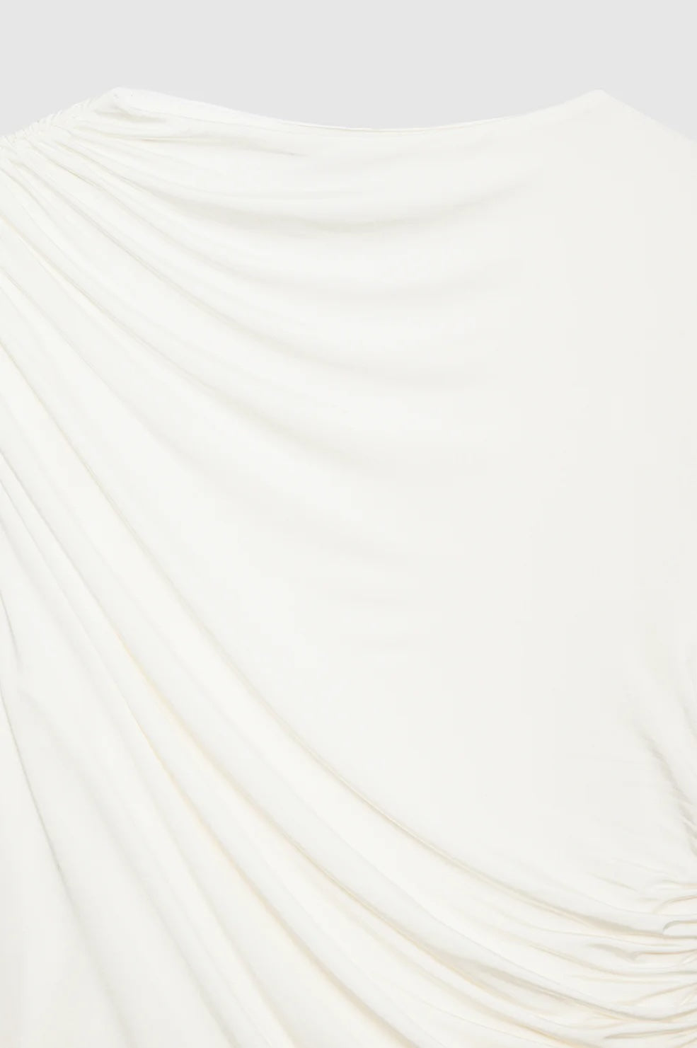 The Bray Top fra Anine Bing er en tidløs og elegant topp med langermet, drapert silhuett. Den er laget i en glatt og lett glinsende blanding av viskose og spandex, som gir både komfort, bevegelighet og et sofistikert uttrykk.