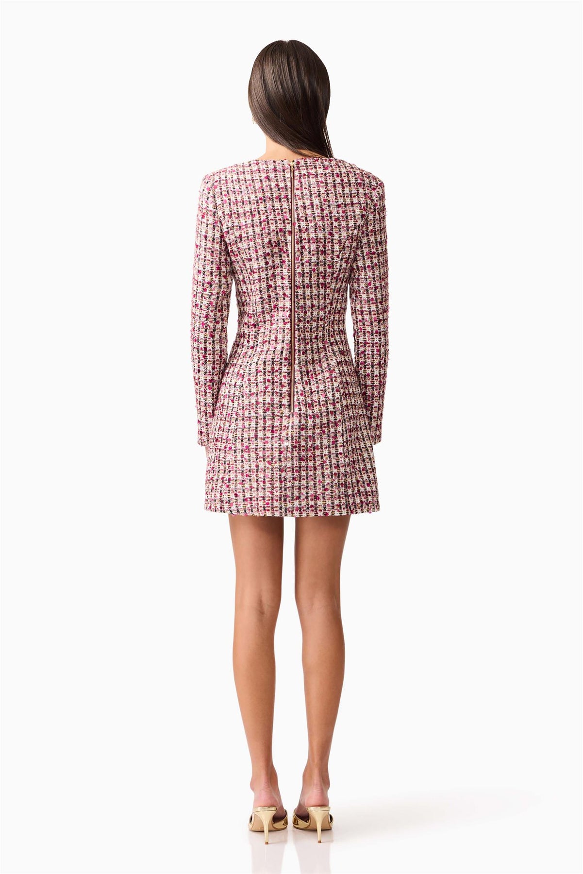 Bianca Long Sleeve Mini Dress fra Elliatt er en Chanel-inspirert bouclé-kjole med en moderne og trendy vri. Kjolen har en flatterende hjerteformet utringning, lange ermer og et A-formet skjørt som skaper en feminin og balansert silhuett.
