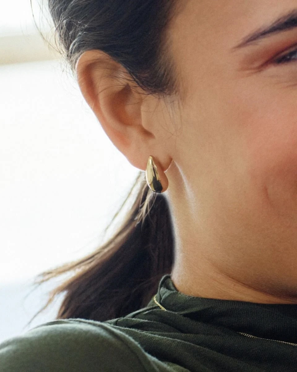 En tidløs dråpeform i blandede metaller som møtes i perfekt harmoni, danner grunnlaget for Harmony. Dråpen i disse vakre 14K gullbelagte studsene er lett buet, sitter fint på øret og gir karakter til både hverdags- og festlooken. Skaper en herlig effekt sammen med det iøynefallende armbåndet eller ringen i serien, med både 14K gullbelegg og blankt rustfritt stål.