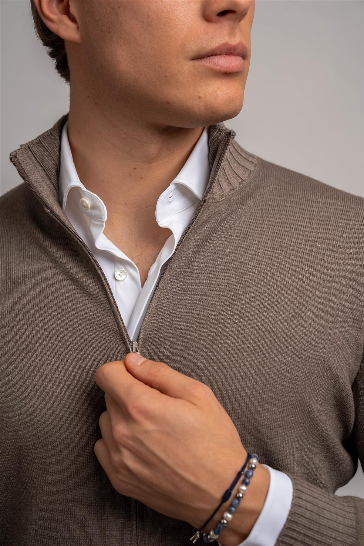 Nydelig Cardigan i en myk og behagelig ullblanding. Kommer med ribbestrikket nakke, mansjetter og fald. Toveis glidelåslukking gjør genseren komfortabel og allsidig, perfekt å ha på seg som jakke på mildere dager.