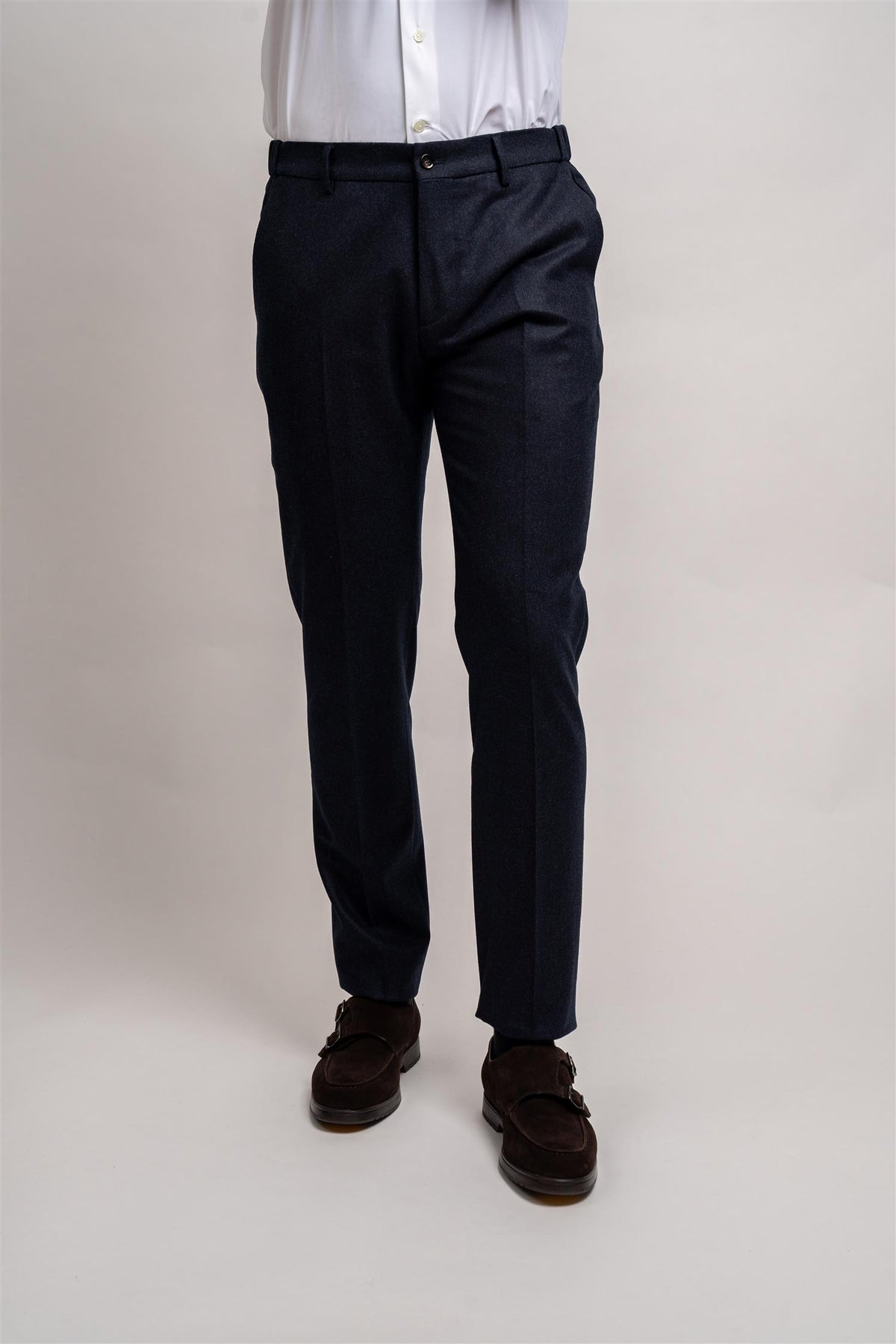 Morello fra Berwich er en klassisk og stilren dressbukse. Laget i behagelig flanell i 100% ull. Buksen er utstyrt med beltehemper i linningen, skråstilte lommer på sidene og lommer bak.