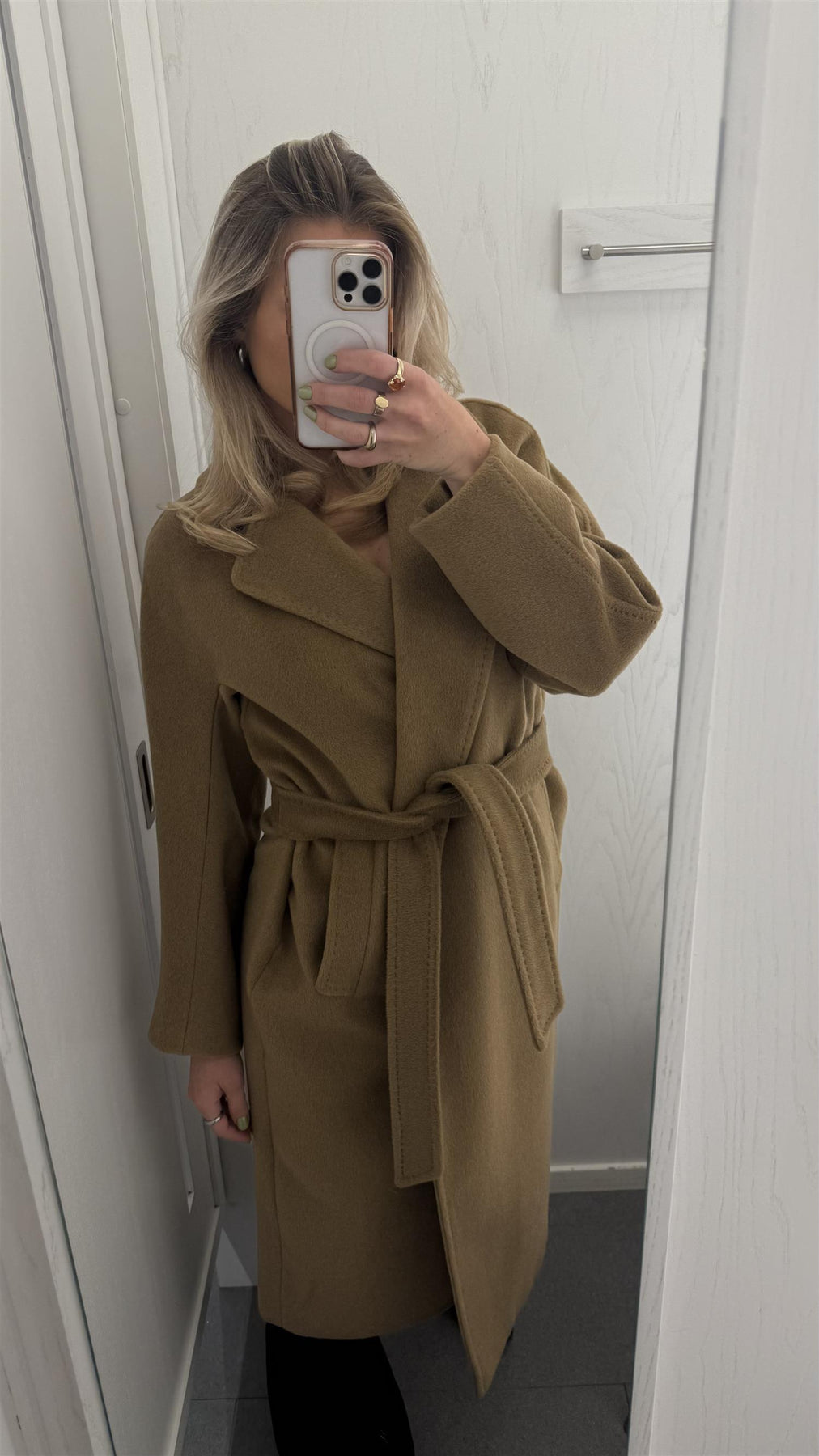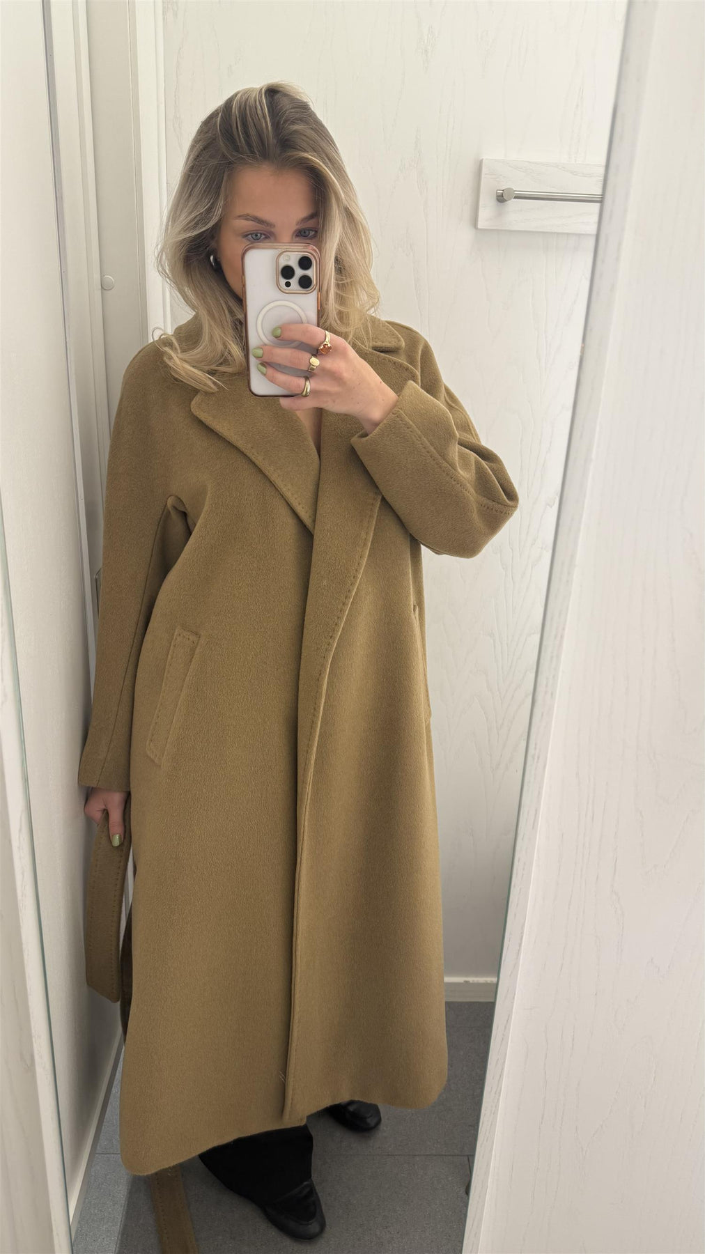 Tempera fra Weekend MaxMara er en tidløs kåpe med myk, omsluttende silhuett og belte i livet som fremhever fasongen. Tempera er laget i en luksuriøs blanding av ull, alpakka og mohair, som gir en varm og elegant tekstur med naturlig glans. Det ledige snittet og kimonoermene gir et moderne uttrykk, mens de klassiske detaljene gjør kåpen perfekt for både hverdagsbruk og spesielle anledninger.