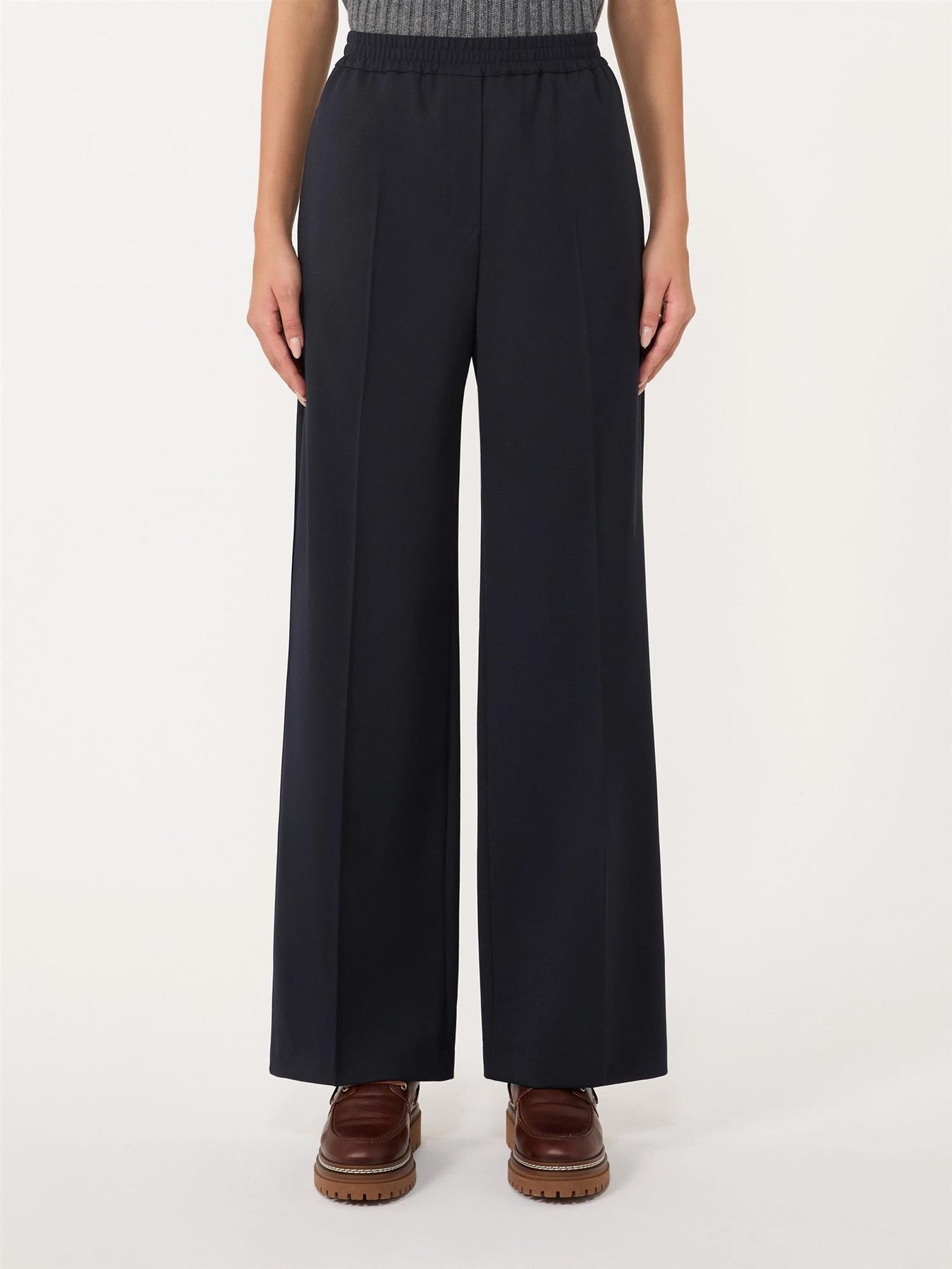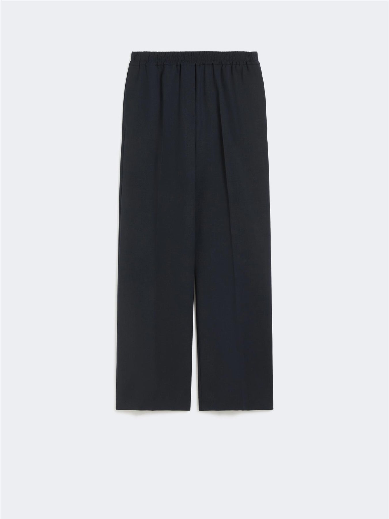 Petra fra MaxMara er en tidløs bukse med avslappet komfort og klassisk snitt. Petra er laget i en teknisk stretch-gabardin av ullblanding som gir både struktur og bevegelsesfrihet. Den har elastisk midje med justerbar snøring, rette ben og pressefolder som gir et rent, sofistikert uttrykk.