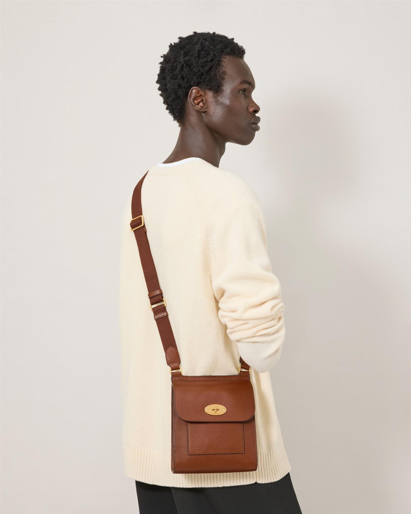 Den lille størrelsen gjør den perfekt for hverdagsbruk eller kveldsantrekk, samtidig som romslig hovedrom og praktiske lommer sørger for at du får plass til alt det viktigste. Justerbar skulderrem og ikoniske Mulberry-detaljer gir vesken både funksjonalitet og luksuriøs finish.